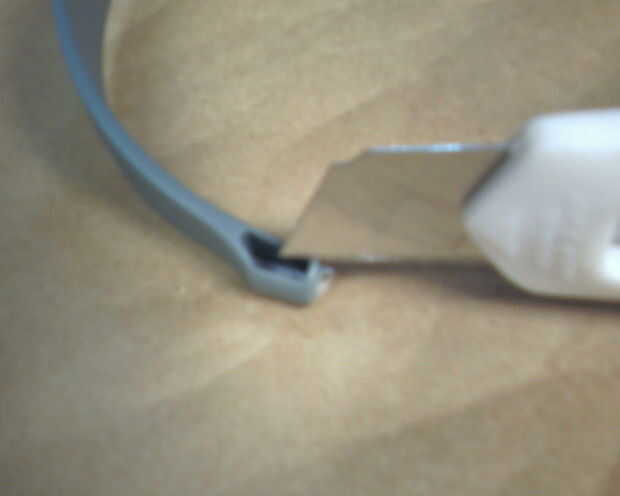 a continuación, tome una navaja y cortar la parte inferior de la cinta justo por encima de la rotura.