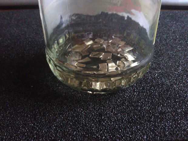 Ahora necesitamos un recipiente de plástico o vidrio. Coloque las piezas de cinc en el recipiente, luego vierta HCl un poco en él.