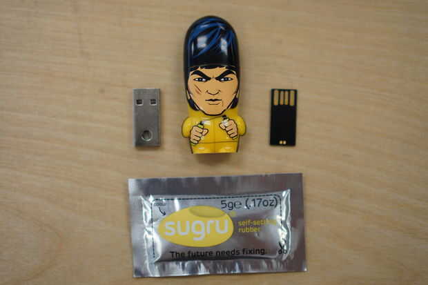 Consigue un pack de Sugru en el color de su elección. Aunque el paquete múltiple sólo contiene rojo, amarillo, azul, negro y blanco, puede crear toda la gama de colores de mezclar y combinar. Por favor consulte la tabla de color adjunta espectro para crear el tono perfecto para tu USB. Quería mi ser amarillo para mi Bruce Lee Mimobot USB (sí, soy ese tipo de "matchy match").