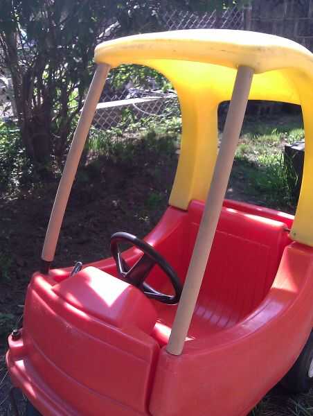 Mi hijo estaba jugando con uno que estaba todavía en condiciones de trabajo, así que sabía que le gustaba em. Así que he rescatado este bit ' plástico o, añadió unos nuevos soportes de techo de bambú y alguna cinta adhesiva y voila - buena como viejo.