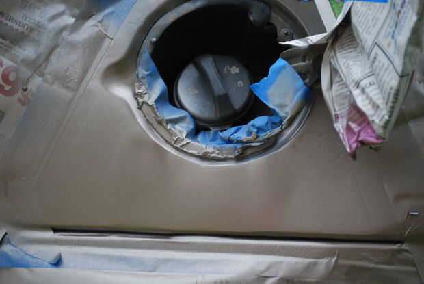 Recogí la siguiente sombra más oscura, y emparejó cuando coloqué el aerosol puede casquillo contra la parte inferior del coche, con la no reflexión de la luz del sol para sesgar el color.