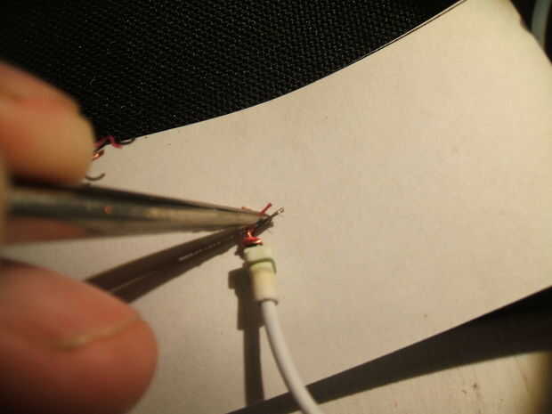 Eventualmente, tuve un nudo apretado y había acortado los conductores a 5-7mm de largo listo para soldar.
