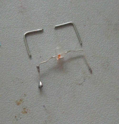 Pero esto era un callejón sin salida, la elasticidad del alambre plano se perdió. El LED estaba en y trabajando, pero empujar era precaria.