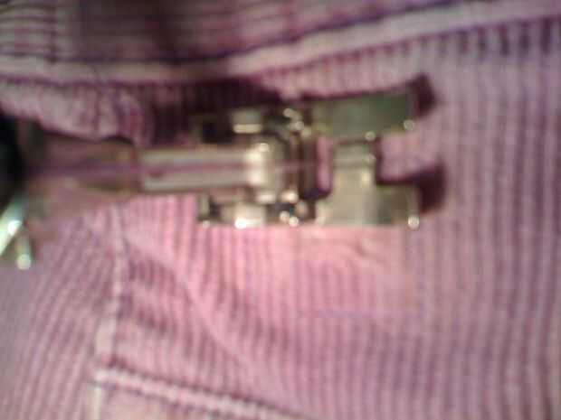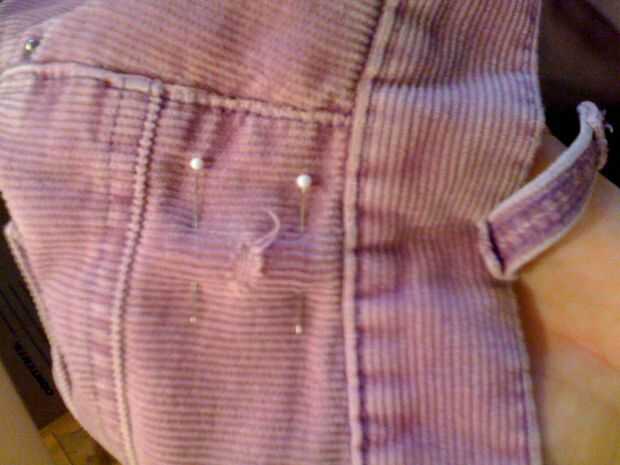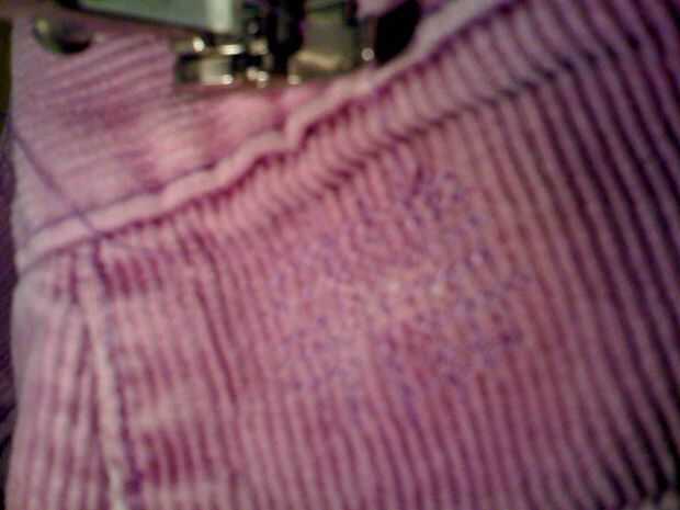 Puntada usando hilo que coincida con los pantalones (o hilo altamente contrastante si se prefiere), alrededor del orificio, evitando las clavijas, y luego hacia adelante y hacia atrás a través del área rasgado. Utilice la función inversa de la máquina de coser, pesca la línea ligeramente cada paso, para que cada línea de la costura es un milímetro o dos separados. Cuando usted ha hecho una sola dirección, gire el pantalón 90 grados y hacer una segunda pasada. Usted debe terminar con algunas costuras que parece rayado, y el agujero apenas será visible más. Las últimas fotos muestran esto pero son tristemente borrosas (mis disculpas).