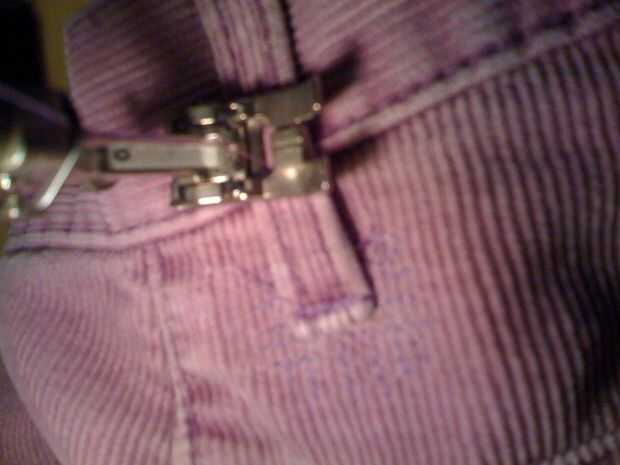 Puntada hacia adelante y hacia atrás en el extremo de la onda un par de veces. Luego disminuir la longitud de puntada y aumentar la amplitud hasta que un fino, corto, zig zag de la puntada y vaya hacia atrás y adelante dos veces más. Final de la costura en el centro del lazo, la costura es menos probable que tire por ahí.