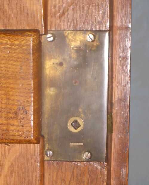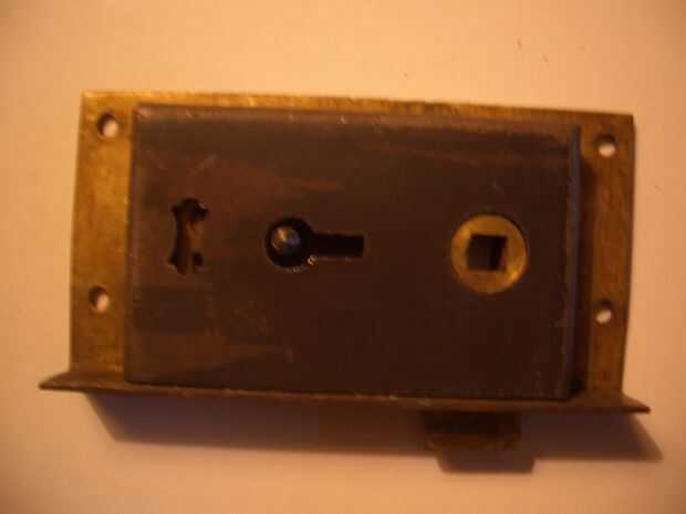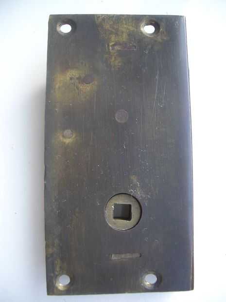 La tarea siguiente es desmontar el retén. Puede tener suerte y encontrar que es atornillada, pero muchas capturas de latón solo se mantienen unidas por zapatas rectangulares en la cubierta que encajan firmemente en los agujeros en la placa trasera. Tendrá que persaude las dos partes para separar por el uso cuidadoso de un viejo destornillador como palanca. O las zapatas hacia fuera desde el lado de la placa.