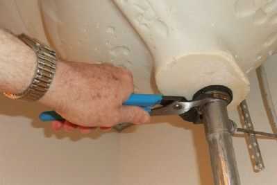 El viejo ensamble es de metal y tiene una tuerca debajo del fregadero de latón. Afloje con los alicates.
