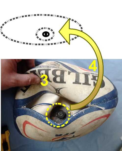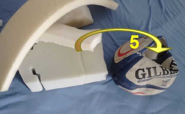 5) corte el bloque de espuma (con un criado del cuchillo por ejemplo) con 8 lados sothat reproduce la forma de una pelota de rugby en una escala mayor de slightely (1.2:1 < escala < 1.5:1)