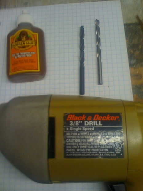 broca para taladro de 1/4 de pulgada. Los pernos que conseguí fueron número 8, por lo que tomaban un poco de 1/4. Si tienes diferentes pernos tamaño necesitarás la broca de tamaño adecuada.