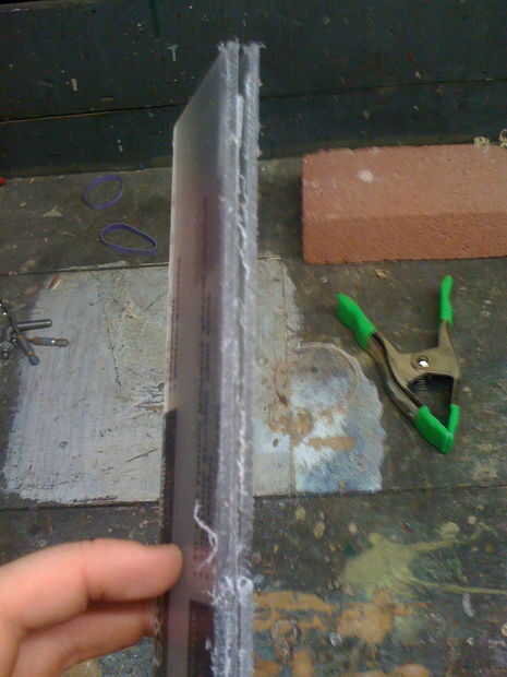 Antes de que introduzca la barra que tenemos para hacerlo. Lo primero es lo primero, tenemos que medir. Primero comprobar longitud. Mina extendido aproximadamente un cuarto de pulgada más allá de cada lado, así que decidí dejarlo. Si su mayor que probablemente debería ser cortado antes de que lo pega en el siguiente paso. A continuación compruebe ancho. Medí el ancho de mi parte de arriba que poco más de 2 pulgadas, así que corte mis tiras de 2 pulgadas y tienen un pequeño exceso en la bolsa. Usted quiere exceso o al cerrar la bolsa de la barra se corta en el lado y desgaste la tela en la zona de la bisagra. Mida y marque suficientes tiras para apilarlos en un espesor de 1/4 de pulgada. Tomaron 3 para mí. El simplemente sujetarlos a una tabla y corte. Cuando acabe los bordes será bastante duro. Puede presentar o moler estas pero suavidad total no es necesario. no tengo un archivo para que me los froté contra el ladrillo y lo alisaron los bastante bueno.