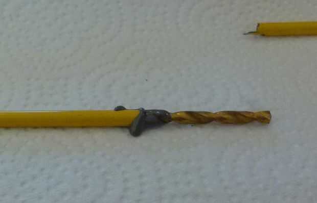Poner pegamento en el cuerpo de la broca y ponerlo en un extremo de la barra, hasta la mitad.