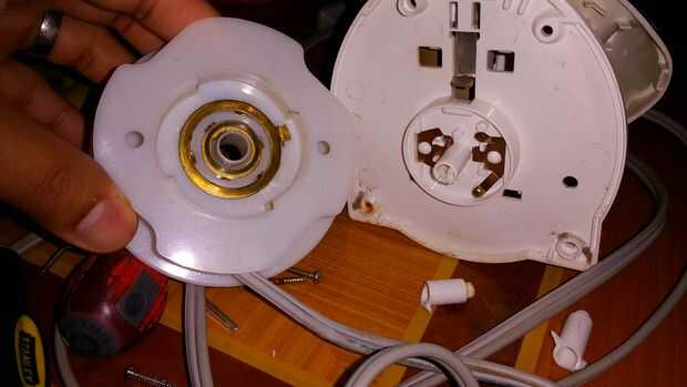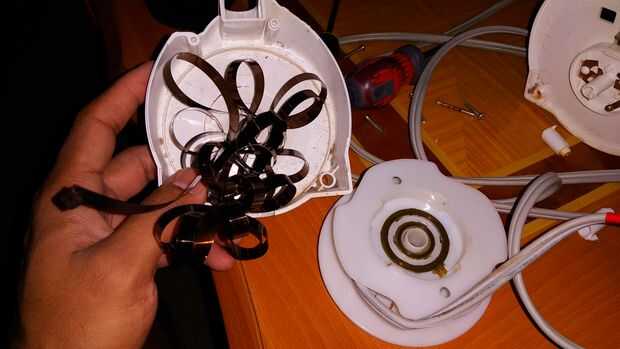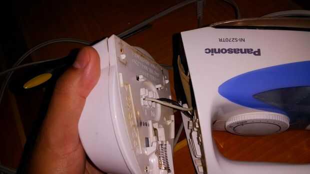Con un destornillador de cabeza Phillips abrió el hierro. Este modelo utiliza un carrete retráctil para el cable. Este diseño siempre le da problemas. Es mucho mejor que han fijado acordes.