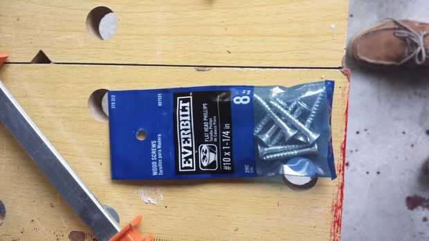 Puesto que los tornillos originales fueron arrancados de sus anclajes no harían una articulación fuerte si utilizamos otra vez. Así fui a Home Depot con uno de los tornillos originales y había emparejado cuidadosamente la longitud de un tornillo un poco más grueso. Es importante la longitud de los tornillos de nuevo son los mismos (o tan cerca como usted puede conseguir) a la longitud de los tornillos originales ya que éstos se atornille en el respaldo de la silla y no queremos cualquier consejos tornillo empujando hacia la parte posterior de la silla. También no elegir un tornillo mucho más grueso que los originales como podría dividir la madera de de que la silla se hace. Sólo un poco más grueso va a hacer muy bien, solo estamos tratando de hacer que el tornillo morder firmemente la madera. También, elegí Phillips regular (o a veces llamado "plus") tornillos de cabeza y puesto que estos tornillos están fuera de la vista debajo de la silla el color plata no sería sensible.