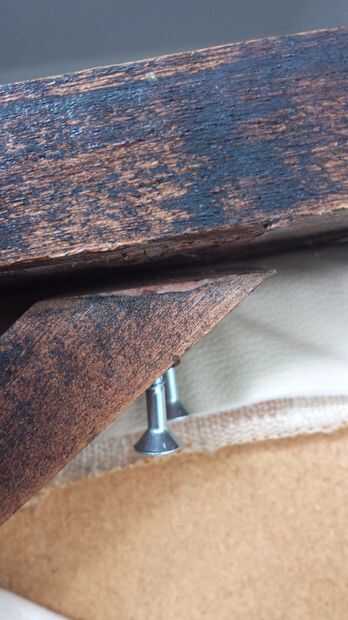 También, este es el momento perfecto para establecer parcialmente en los tornillos a la madera. Atornille los tornillos en la madera hasta que sólo las puntas, empujando hacia fuera y luego hacia fuera hasta que desaparecen las puntas. Evitar que se enganchen en las superficies de madera cuando se pone con pegamento sobre ellos.