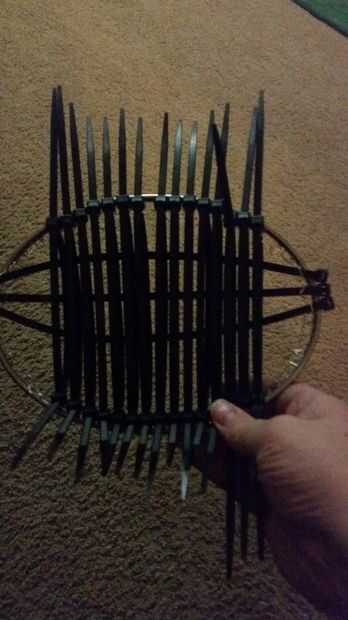 -Después de han instalado las líneas verticales pueden apretar los lazos zip. Teniendo en cuenta que se trata de una tapa, sea el centro de la tapa ligeramente más alto y curvado hacia abajo como salió. La parte inferior pone plana.