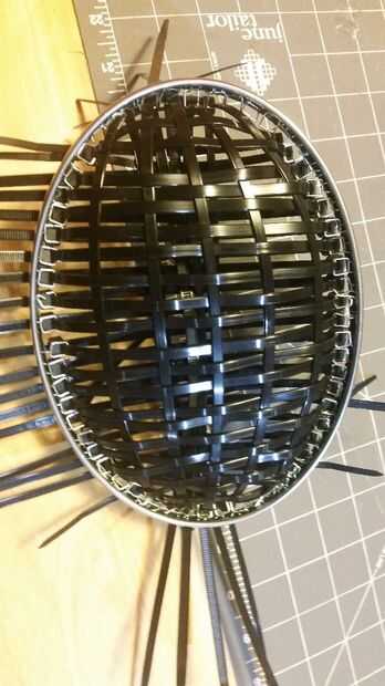 Ahora debería tener algo que se asemeja a un tejido trituradora máscara con colas de amarre zip apuntando todo en direcciones.