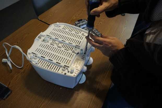 Quite los tornillos en la parte inferior del chasis del tostador. Tenga en cuenta que pueden existir pequeñas pestañas que enganchar la caja sobre el chasis - cada tostador es diferente. En cualquier caso, ser paciente y trabajar metódicamente para evitar grietas o arañazos de la carcasa.