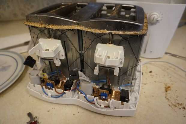 Manijas en los portadores de pan tostado y las perillas de control de la oscuridad tendrán que ser eliminados. (Generalmente sólo se deslice apagado, pero en este caso había poco plástico las capturas que tuvieran que ser forzadas lejos primero.)