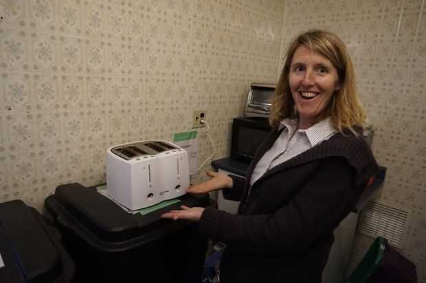Hemos conectado, empuja hacia abajo el pan portador mangos... y voilà que trabaja!