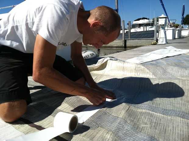 He adquirido un velero de Snark Super viejo que tenía una vela descompuesta sucia, seco y casco decente. La mayoría de los orificios en la vela era pequeña, pero hubo algunas lágrimas largo así. Lo primero que he probado, por supuesto, fue aplicar un