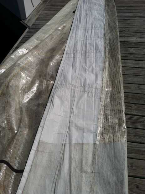 He adquirido un velero de Snark Super viejo que tenía una vela descompuesta sucia, seco y casco decente. La mayoría de los orificios en la vela era pequeña, pero hubo algunas lágrimas largo así. Lo primero que he probado, por supuesto, fue aplicar un