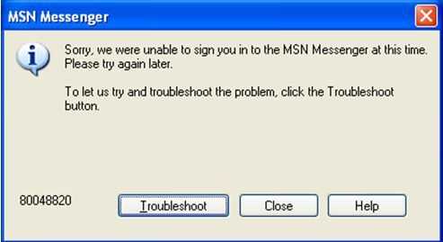 "Lo siento, hemos podido sesión el MSN Messenger en este momento. Por favor Inténtalo más tarde.