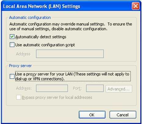 4. Desactive el uso de un servidor proxy para su LAN (esta configuración no se aplicará a telefónico o conexiones VPN) casilla de verificación.