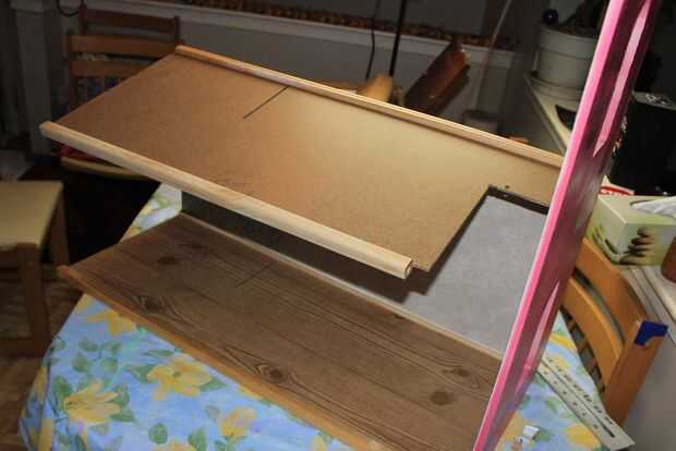 de una librería de cabecera para mi hija, modelado de algunos estantes de juguetes se puede comprar, pero agregó una cala en el un lado de un reloj.La construcción es muy fácil - como madera de construcción dimensional, generalmente, no rebajes o peg