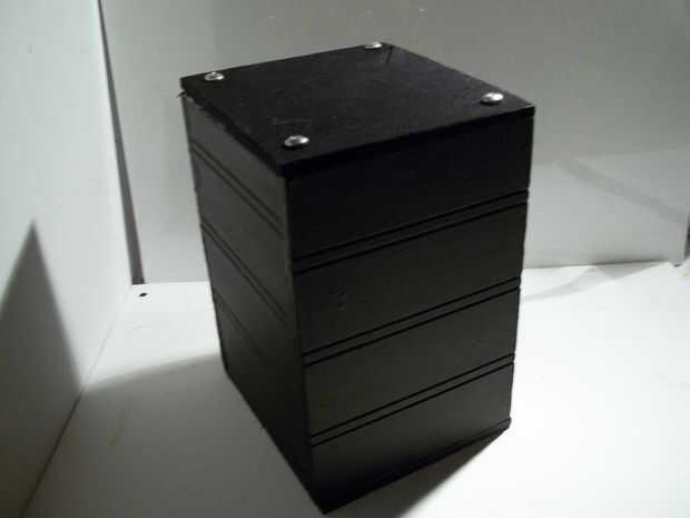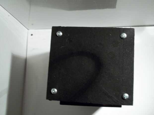 Ahora es necesario poner en la parte superior. Si se perforan agujeros para dejar ese ruido extra a través de como lo hice, yo recomendaría también que cubra este con pantimedias. Luego tomar sus tornillos grandes (1/2") y atorníllelo en la caja.