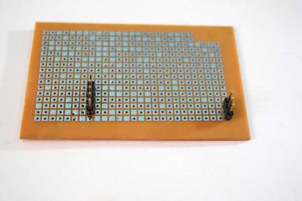 Después de las cabeceras de soldadura permite cortar el exceso PCB, para ello utilicé una herramienta rotatoria, también se puede utilizar un cortador de PCB. Después de cortar la placa debe tener un escudo, como el de la imagen. Se puede lijar los cantos irregulares para un look más limpio.
