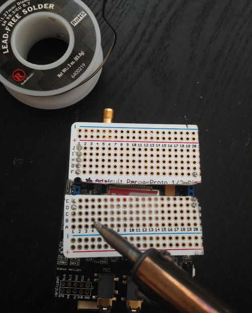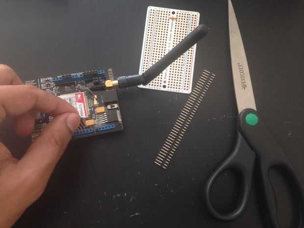 Consulte ahora el circuito en el paso 3 de las clavijas de Cabecera instructable y corte que se inserte en el escudo GPRS que se apila en el Arduino Uno.