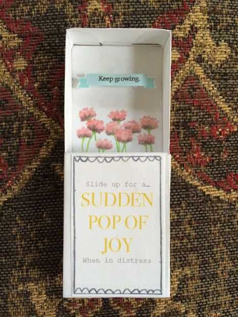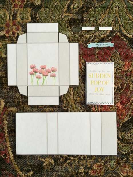 Seguir creciendo corte caja de flores, manga de la caja, etiqueta, etiqueta del amarillo de la alegría y las tiras blancas.
