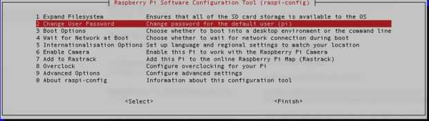 Ahora vas a la opción 2 para cambiar la contraseña de tu Pi de "frambuesa" a algo seguro.