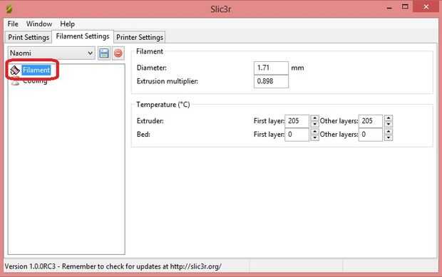 Configurar ajustes de filamento.