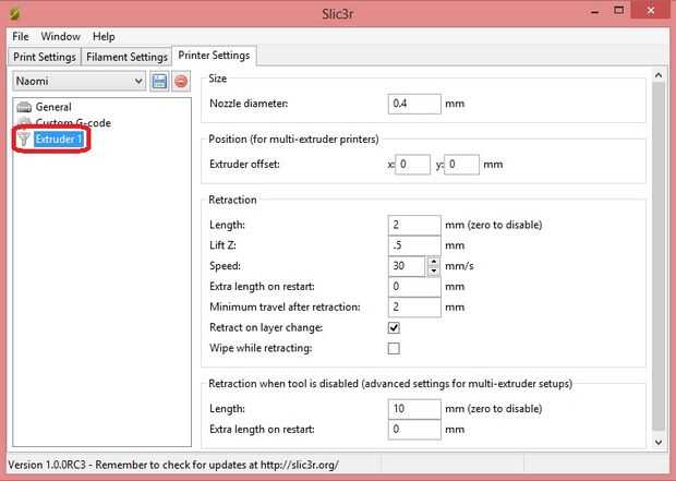 Paso 15: Máquina de cortar Configuración > configuración de la impresora > extrusora 1