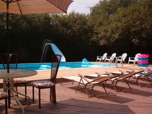 Aviso el agua azul bonito. Una vez verde, ahora azul. No verde de ofensa, usted es un buen color en los árboles, no en mi piscina :D Asesoramiento a otros pool'ers... Descarga líquido hace una enorme diferencia en el mantenimiento de su piscina clara.