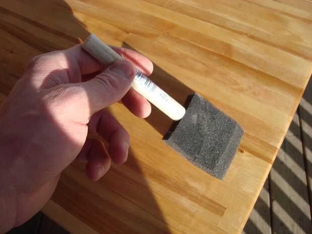 Asegúrese de mezclar bien el acabado. Dependiendo del tipo de acabado que utilizas te tendrá que aplicar con un cepillo o un paño. Desde que estoy usando un acabado más opaco que usando un cepillo. Sin importar qué tipo de acabado, recuerde lo siguiente: