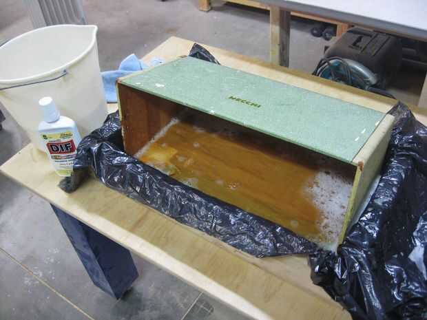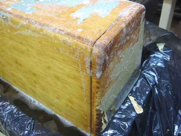 Que había lavada de la superficie de papel con una herramienta de eliminación de fondos y que el caso remojo en una solución de removedor de papel tapiz.