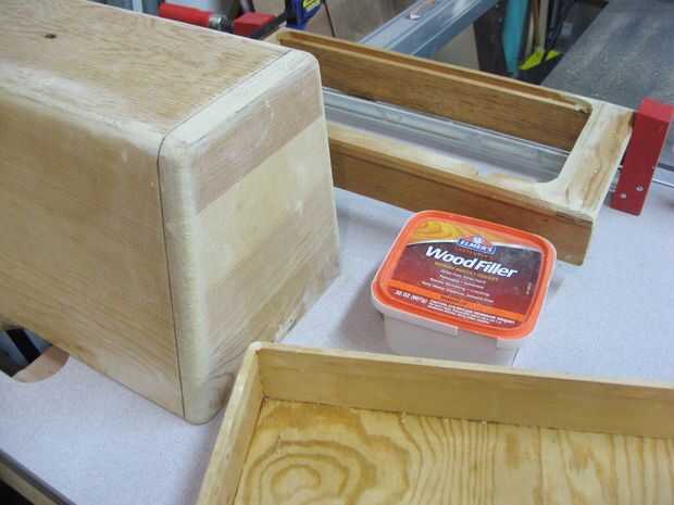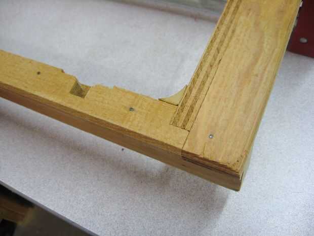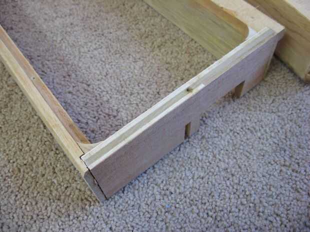 El interior parte de la caja que soporta la máquina de coser necesita un poco de pegamento y de sujeción para apretar cosas hacia arriba.