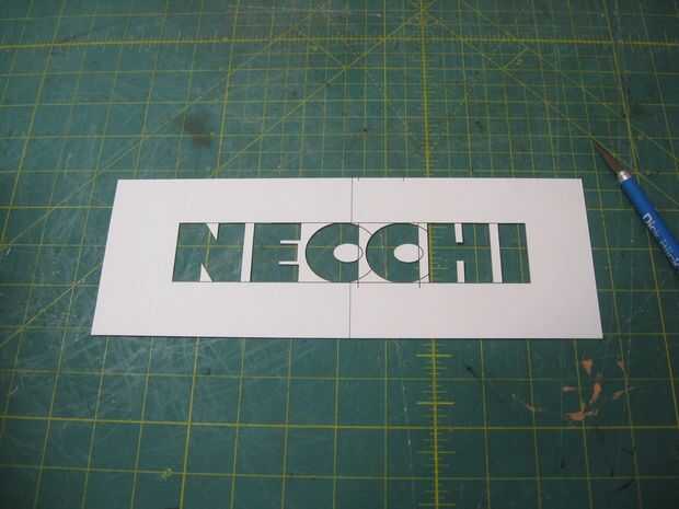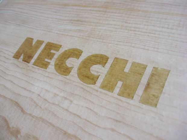 Me preguntaba si podría añadir el nombre de Necchi al lado de la caja en una mancha de madera ligera y luego añadir una mancha oscura alrededor de ella.