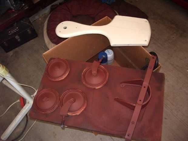 El óxido en las piezas de metal primero fue atacado con un cepillo de alambre para entrar en todos los rincones y grietas. Entonces lijar cada pieza primero con papel de grano 220, luego se trasladó a grano 400.