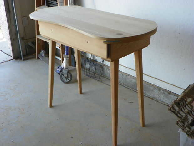 Después desempolvando, utilicé un acondicionador de madera suave en él antes de la tinción. La ayuda de acondicionador la mancha penetre más uniformemente. Sólo necesita estar en pocos minutos antes de la tinción. Después de la primera capa, deje que se seque durante la noche antes de aplicar una segunda capa. Ligeramente antes de aplicar una segunda capa de arena papel de w/240 grano de arena, luego deje que la segunda capa se seque durante la noche. Al hacer las piernas, estaba usando principalmente para arriba-strokes vs golpes abajo. Esto ayuda a prevenir el goteo y funciona.