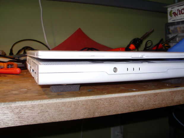 Finalmente, el portátil necesita unos pies para guardar todas las cosas del agua del suelo. Simplemente cortar unos 3/4" espesor de espuma y había pegado a la parte inferior.