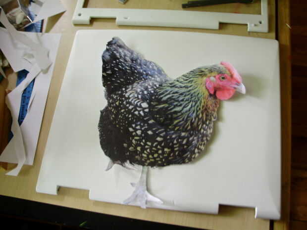 ¿Qué es el punto de pintar tu laptop si no pones un diseño fresco en la parte posterior? Imprimir una foto o diseño en la mejor calidad que puedas. Pintar una capa extremadamente fina de pegamento en la parte posterior de la imagen y fijar en el punto deseado en la computadora portátil.