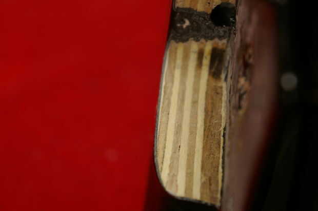 Puesto que planeaba tomar el acabado a la madera desnuda pude obtener una vista de sección transversal de la capa superior aquí también.