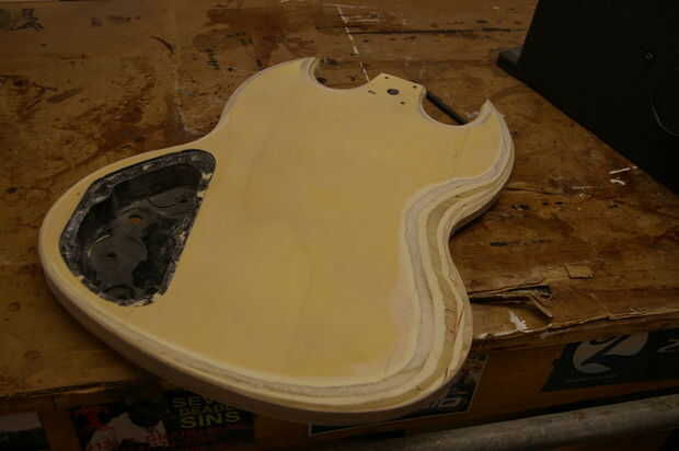 Repintado y cambiar la forma de una guitarra eléctrica de cuerpo sólido (5 / 9 paso)