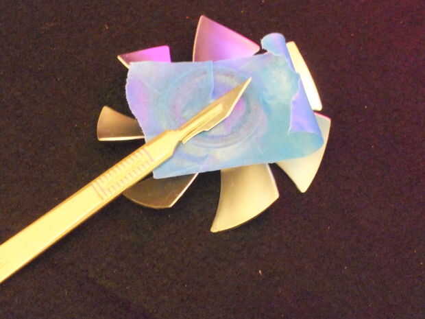 TOMAR UN BISTURÍ O UNA CUCHILLA PARA CORTAR CON CUIDADO ALREDEDOR DEL DISCO QUE RETIRE LA CINTA SOBRANTE.