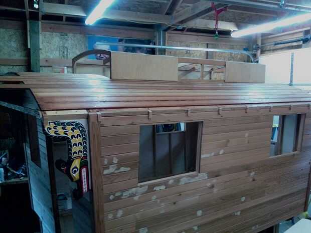 Este carro fue construido por una colaboración de Paleotool (autor de la construcción de un vagón de gitano), yo (PaleoPunk) y nuestro amigo, AmericanPikey. El AmericanPikey recientemente jubilado y quería una casa de retiro móvil. El diseño de vardo