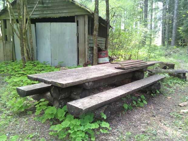 Tomé el cedro de 5/4 revestimiento este edificio para hacer 3/8"(o alrededores) revestimiento de T & G. Sin mesa de fresadora o modeladora, utilicé una sierra de mesa; cada mesa requiere múltiples pasadas.