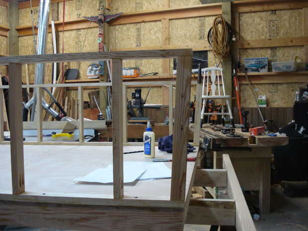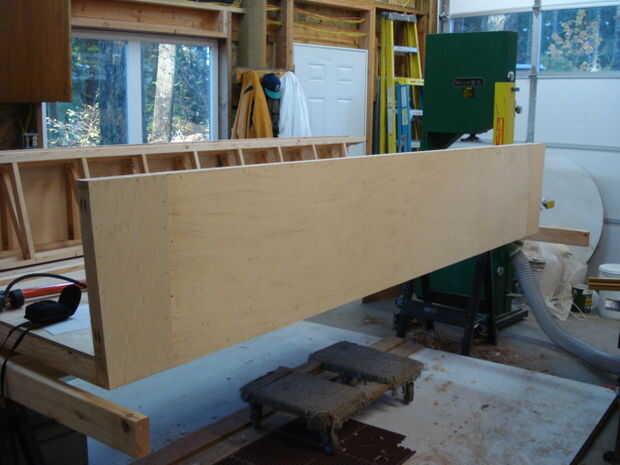 La estructura de pared es 1-1/2 x 3/4 pulgadas mano molida del abeto de Douglas de un árbol que creció con. Derribó en la tormenta de viento de día Inaugural de área de Seattle en 1992. Todo revestimiento es contrachapado, pegadas y con grapas (grapas de corona de 1/4 de pulgada) a la estructura. El ángulo de 3,5 grados de las paredes frontales y traseros tenía a incorporarse en la canalización vertical del reborde.